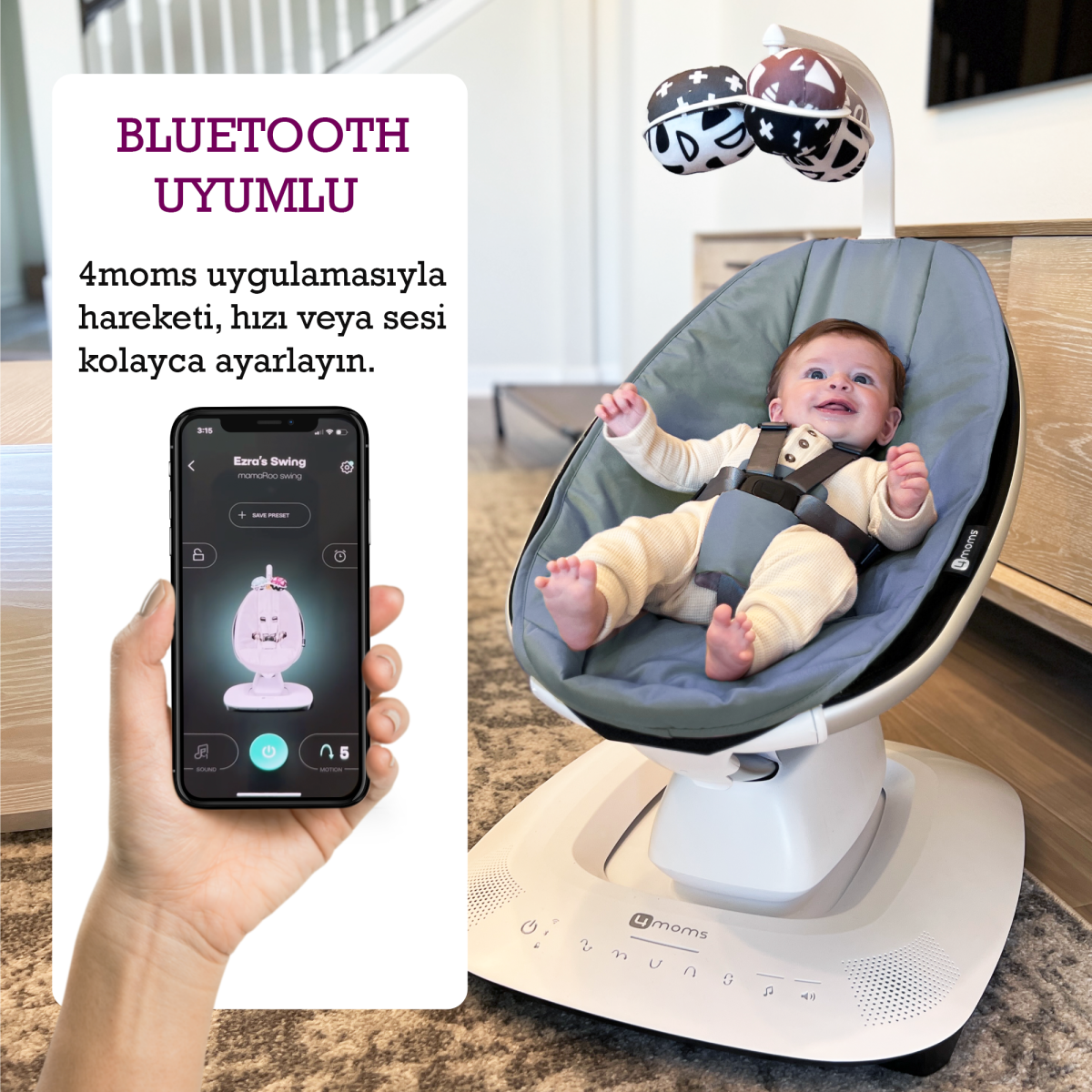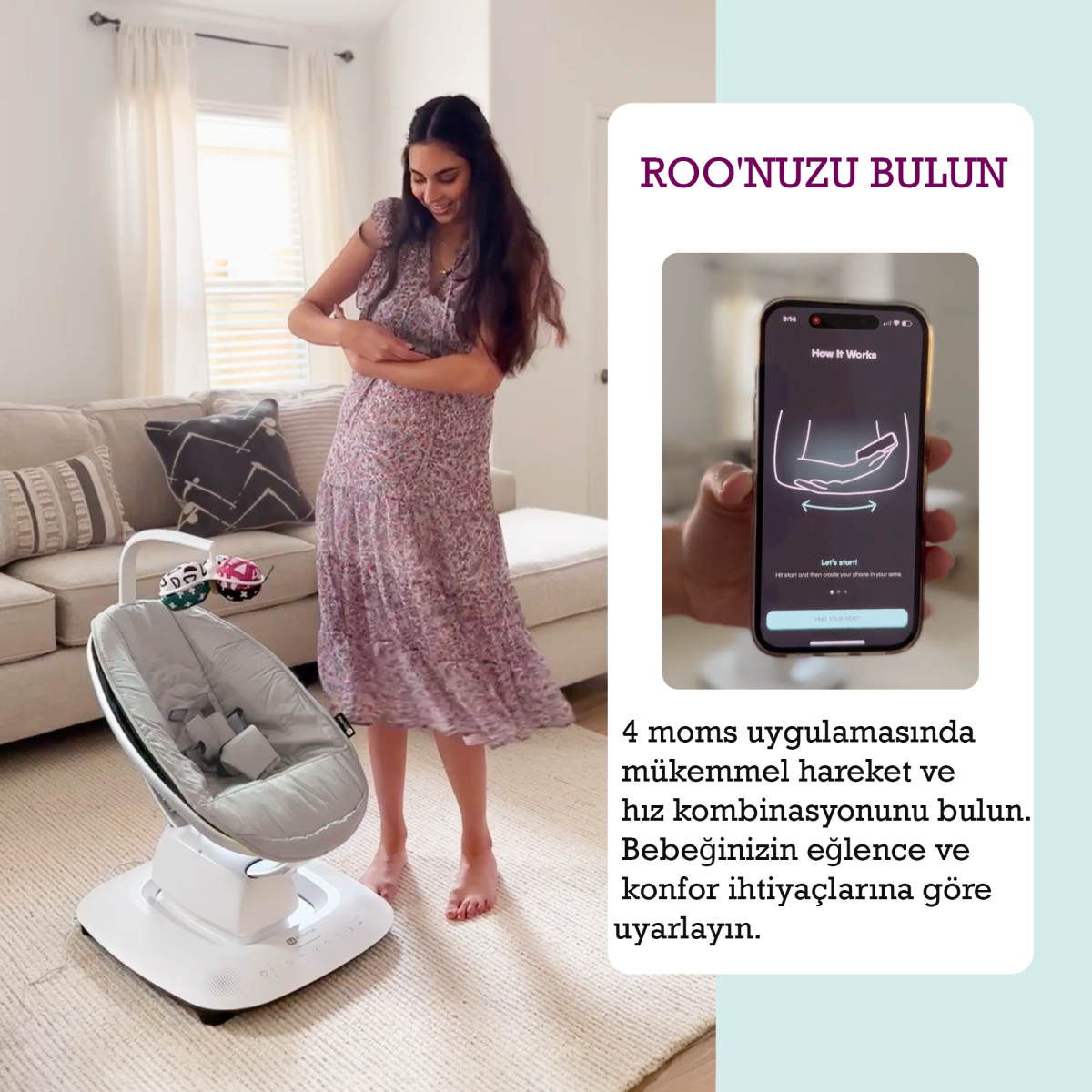 Ürün Özellikleri | MamaRoo Çok Hareketli Bebek Salıncağı, sizin gibi hareket eden tek bebek salıncağıdır. İlham veren hareketlerimiz ebeveynlerin doğal ritimlerini ve hareketlerini taklit ederek bebeğinizi kollarınızda tutamadığında onu güvenli bir şekilde yere koyabileceğiniz en tanıdık yer haline getirir. MamaRoo'nun hareketleri ebeveynlere eller serbest zaman tanırken, bebeğiniz etrafındaki dünyayı rahatça izleyip keşfeder. Öyleyse devam edin ve bebeğinizin yanınızda mutlu olduğunu bilerek yapacağınız işlere göz atın. Beş hareket, beş hız ve dört ses ile çok hareketli bebek salıncağımızdaki her sürüşü, ruh hali ne olursa olsun bebeğinizi eğlendirmek ve neşelendirmek için özelleştirebileceksiniz. 4moms uygulamasındaki (Android ve iOS'ta mevcut) yeni Roo'nuzu Bul özelliği, kollarınızdan salıncağa kusursuz geçişi destekleyecek ve size en uygun hareket ve hız kombinasyonunu keşfetmenize yardımcı olacaktır. Bebek ana kucağının kılıfı çamaşır makinesinde yıkanabilir. 9 kg'a kadar kullanılır. |